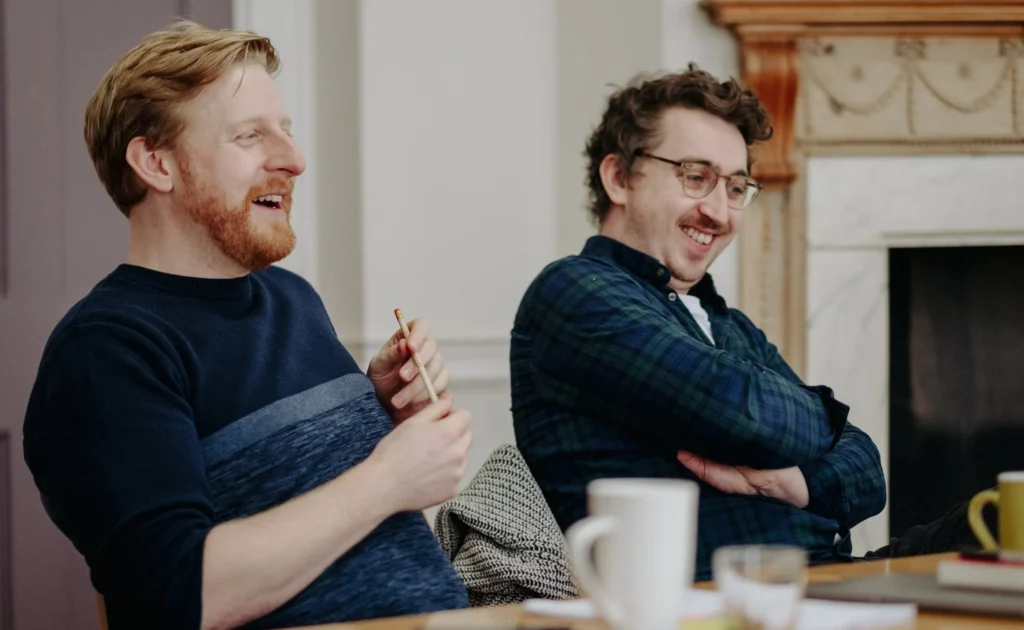 Michael Patrick (actor/writer) & Oisín Kearney (writer/director) are an award winning Belfast-based creative partnership. In February 2022, Michael was diagnosed with Motor Neurone Disease, but he and Oisín are continuing to make work. Michael and Oisín were part of BBC's inaugural Comedy Collective scheme, where they shadowed Reece Shearsmith, Steve Pemberton and George Kane on the final season of INSIDE NO. 9. For screen, they were the writers & creators of the BBC Three comedy drama MY LEFT NUT (winner of RTS regional awards in 2021 for Best Drama and Best Writing), and they also provided storylines for SOFT BORDER PATROL (BBC NI). They recently wrote the two short films SO YOU’RE GOING TO DIE (Starring James Nesbitt and Conor MacNeill, produced by Two Cities TV, with funding from Northern Ireland Screen) and HELPLESS (starring George Robinson, Saoirse Monica Jackson and Éanna Hardwicke, produced by BBC and Fabel). They have also co-written many theatre plays together including MY LEFT NUT (Show in a Bag, winner of the Summerhall Lustrum Award); THE ALTERNATIVE (Fishamble’s A Play for Ireland, winner of two Irish Times Theatre Awards); THE BORDER GAME (Lyric Belfast), MY RIGHT FOOT (Dublin Theatre Festival); and an adaptation of Shakespeare’s THE TRAGEDY OF RICHARD III (Lyric Belfast). Their radio writing includes BITTER PILL (BBC Radio 4) - nominated Celtic Media Festival Award: Best Drama, Sound; THE HAZARD OF THE DIE (BBC Radio 4) - winner Celtic Media Festival Award: Best Documentary, Sound; THIS ONE TIME ON THE BORDER (Radio Ulster); QUICK COMEDIES (Radio Ulster); and THE 100 YEAR OLD BACKSTOP (BBC Radio 4). As an actor, Michael starred in the stage versions of MY LEFT NUT; MY RIGHT FOOT; and THE TRAGEDY OF RICHARD III, as well as other work with The Royal Shakespeare Company, The Abbey Theatre Dublin, and The Lyric Theatre Belfast. On screen, he has appeared in Series 1 of BLUE LIGHTS, KRYPTON, THIS TOWN, and GAME OF THRONES. Oisín has directed several award-winning plays including LIE LOW by Ciara Elizabeth Smyth (Royal Court, Traverse Theatre, Abbey Theatre), the stage version of MY LEFT NUT, as well as THE TRAGEDY OF RICHARD III and MY RIGHT FOOT. For screen, he directed his and Michael’s short films HELPLESS and SO YOU’RE GOING TO DIE, as well as the Sharp Short funded SLAY & PREPARE. Oisín’s background is in feature documentaries - assistant producing 66 DAYS and Oscar long-listed and Emmy-nominated ELIÁN. He directed a feature documentary BOJAYÁ: CAUGHT IN THE CROSSFIRE, which premiered at Hot Docs Film Festival in Toronto in April 2019.